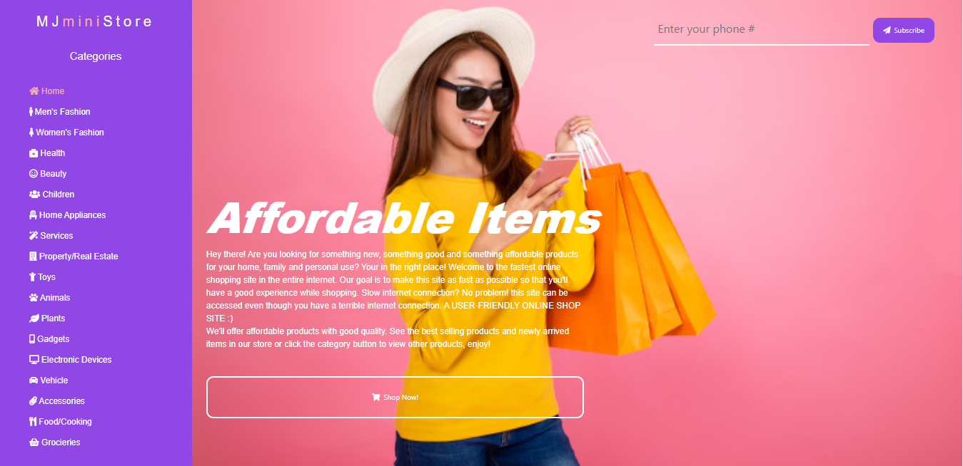 A single page static website, serverless ecommerce site. Designed for mobile views. (Responsive Website)