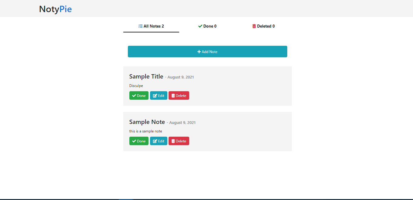 Complete CRUD (Create, Retrieve/Read, Update, Delete) note application (Homepage)